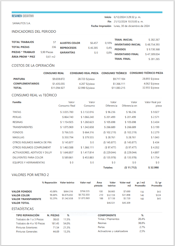 Para gerentes experimentados, el resumen ejecutivo es una buena herramienta para determinar la situación del taller de manera rápida.