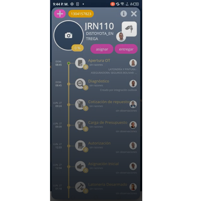 Imagina que cada vehículo participa en una carrera de relevos, donde se pasa entre los distintos empleados del taller para completar su proceso. Ahora visualiza múltiples carreras de relevos ocurriendo simultáneamente, una por cada vehículo en tu taller. Así es como SysTime organiza y optimiza el flujo de trabajo
